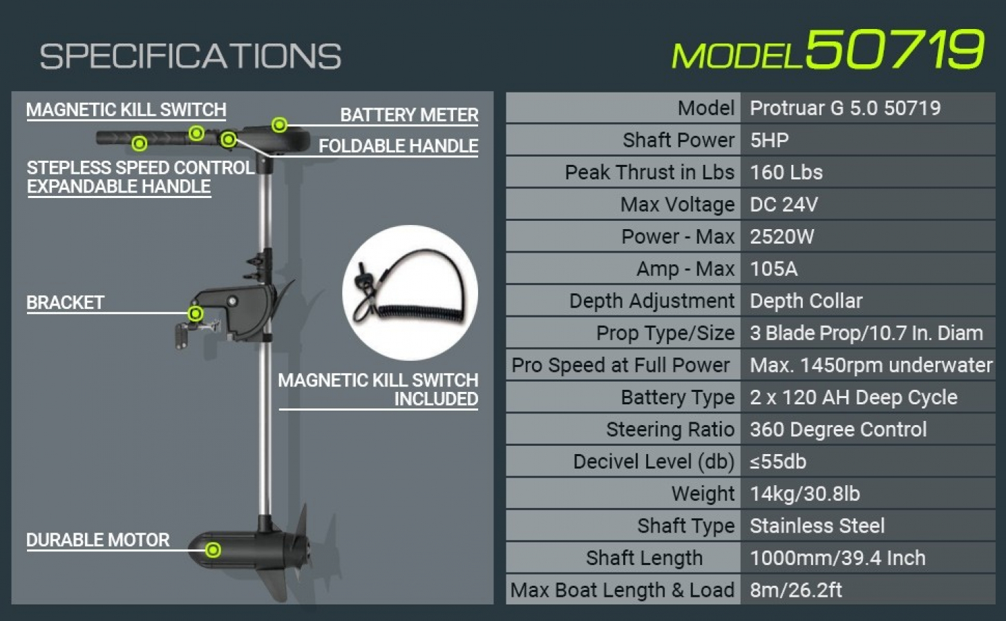 Vilkme - 160Lbs Tiešās piedziņas bezsuku motors 24V