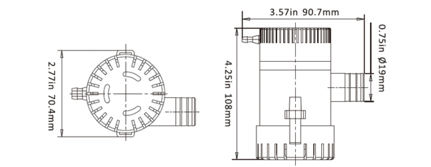 Водяной насос 12V 500GPH 1900 l/h 2.2A 19mm